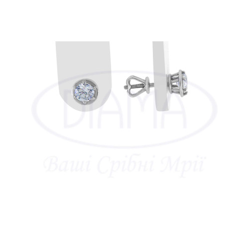 Сережки срібні з білим цирконом у формі круга. Срібло 925 проби, покрите родієм. Розмір круга 7 мм.
