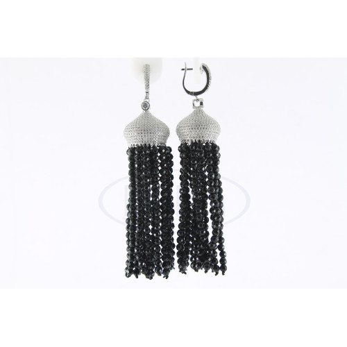 Срібні сережки з чорним та білим цирконом. Срібло 925 проби, покрите родієм. Комплект складається з сережок та кольє.