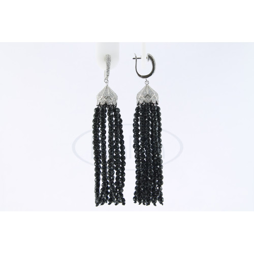 Срібні сережки з чорним та білим цирконом. Срібло 925 проби, покрите родієм. Комплект складається з сережок та кольє.
