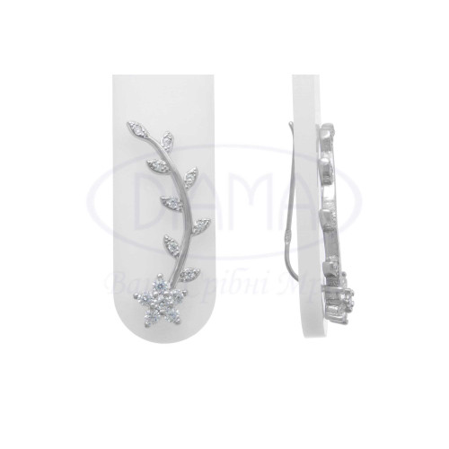 Сережки срібні з білим цирконом у формі гілки з листям. Срібло 925 проби, покрите родієм.