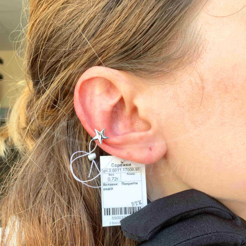 Сережка срібна Каффа у формі зірки . Срібло 925 проби, покрите родієм. Розмір зірки 10х9 мм.