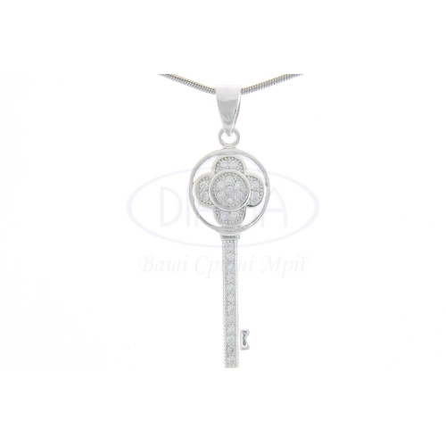 Підвіска срібна у формі ключа прикрашена білим цирконом. Срібло 925 проби, покрите родієм.