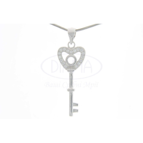 Підвіска срібна у формі ключа та серця з білим цирконом. Срібло 925 проби, покрите родієм.