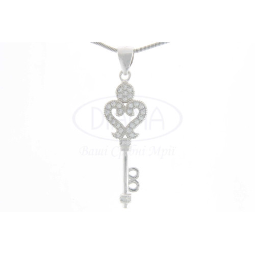 Підвіска срібна у формі ключа прикрашена білим цирконом. Срібло 925 проби, покрите родієм.