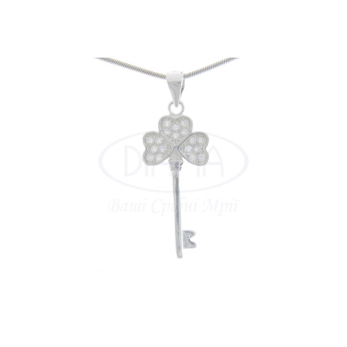 Підвіска срібна у формі ключа прикрашена білим цирконом. Срібло 925 проби, покрите родієм.