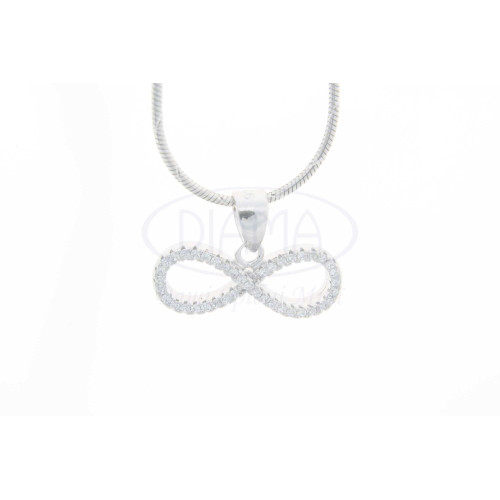 Підвіска срібна у формі нескінченності з білим цирконом. Срібло 925 проби, покрите родієм.