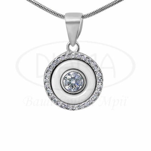 Підвіска срібна з білою ювелірною керамікою і білим цирконієм. Срібло 925 проби, покрите родієм. В наборі присутні каблучка, сережки та підвіска.