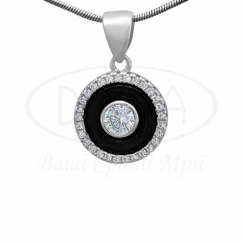 Підвіска срібна з чорною ювелірною керамікою і білим цирконієм. Срібло 925 проби, покрите родієм. В наборі присутні каблучка, сережки та підвіска.