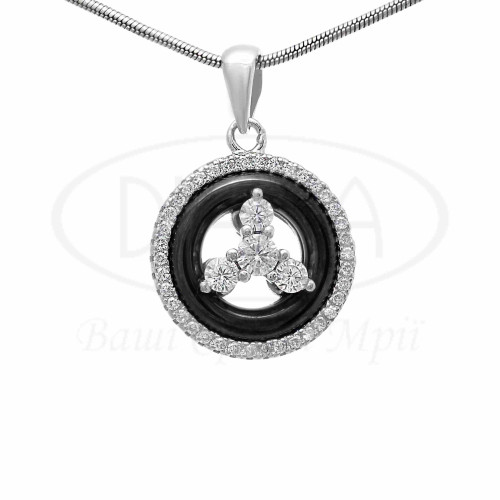 Срібна підвіска з чорною ювелірною керамікою та цирконом. Срібло 925 проби, покрите родієм.