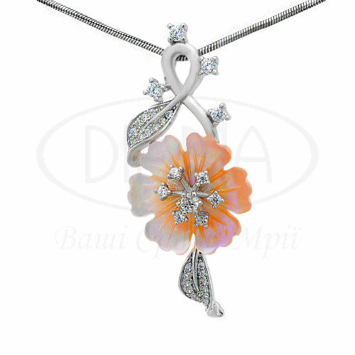 Підвіска срібна з кольоровим цирконом та перламутром, в стилі Роберто Браво. Срібло 925 проби, покрите родієм. В наборі присутні каблучка, сережки та підвіска.