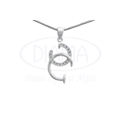 Срібна підвіска у формі подвійного цвяха з білим цирконом. Срібло 925 проби, покрите родієм. В наборі присутні каблучка, сережки та підвіс.