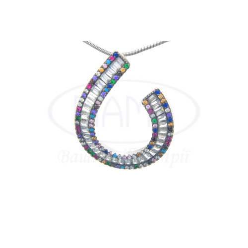Підвіска срібна у формі підкови з кольоровим цирконом. Срібло 925 проби,покрите родієм. У наборі присутні каблучка, сережки та підвіска