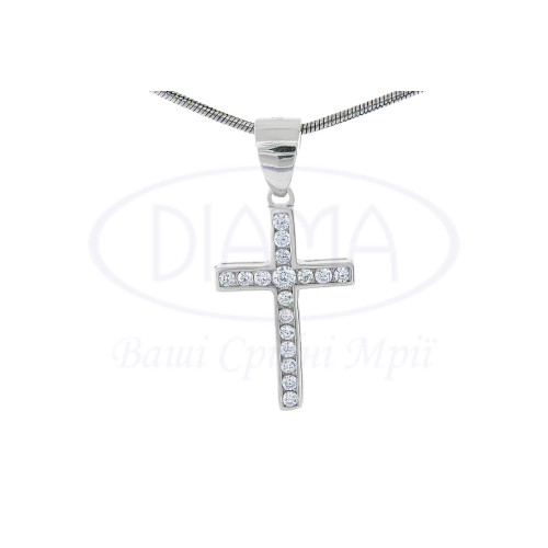 Хрестик зі срібла 925 проби, покритий родієм. Вставка білий Циркон. Розмір хрестика 19×12,5 мм