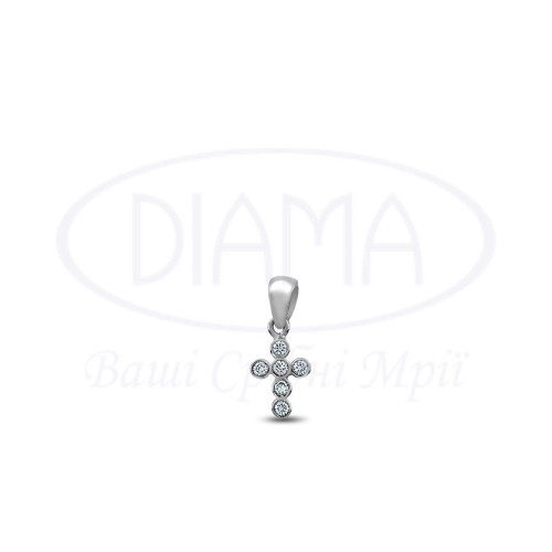 Хрестик срібний з білим цирконом. Срібло 925 проби, покритий родієм. Розмір хрестика 8х11 мм.
