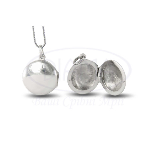 Підвіска срібна для фотографії. Особливість цієї прикраси в тому, що вона складається з двох частин, поєднаних між собою механізмом, завдяки якому підвіска відкривається. Срібло 925 проби, покрите родієм. Діаметр - 22 мм, товщина - 8 мм.