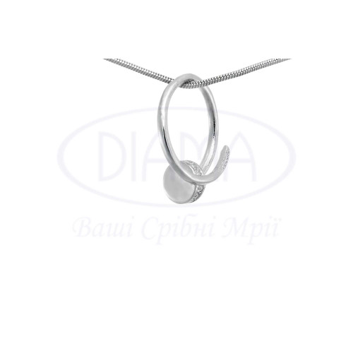 Срібна підвіска в формі цвяха. Срібло 925 проби, покрите родієм. В наборі присутні браслет, сережки, підвіска та каблучка.