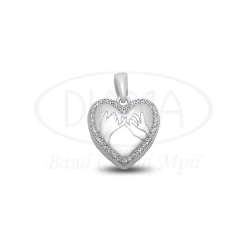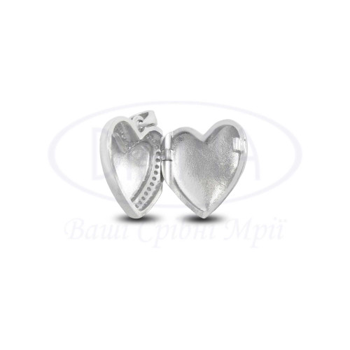Срібна підвіска виконана у формі серця що відкривається та прикрашена білим цирконом. Срібло 925 проби, покрите родієм. В комплекті є кольє та підвіска.