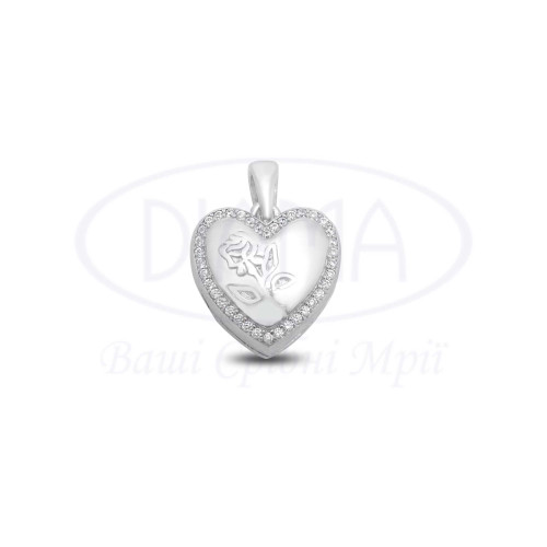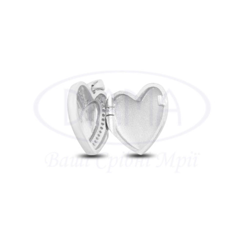 Підвіска срібна, що відкривається. Виконана у формі серця з візерунками та білим цирконом. Срібло 925 проби, покрите родієм. Діаметр підвіски 16 мм.