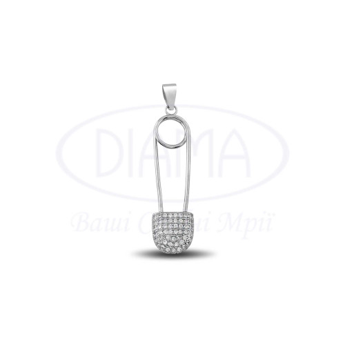 Підвіска срібна в формі булавки з білим цирконом. Срібло 925 проби, покрите родієм. Висота підвіски 36 мм. ширина головки 10 мм. В наборі є каблучка, сережки, кольє та підвіска