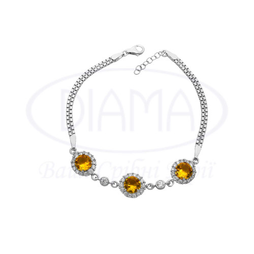 Срібний Браслет з Султанітом та білим цирконом. Срібло 925 проби, покрите родієм. Султаніт змінює свій колір в залежності від освітлення. Може бути зеленим, помаранчевим, жовтим, малиновим.