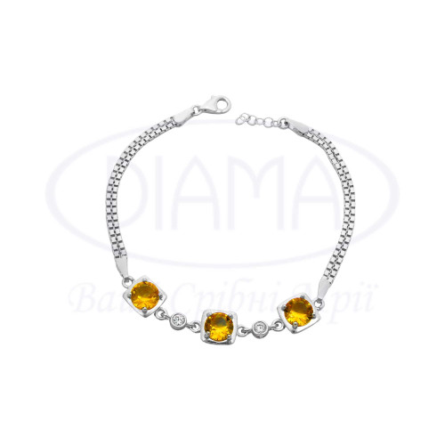 Срібний Браслет з Султанітом та білим цирконом. Срібло 925 проби, покрите родієм. Султаніт змінює свій колір в залежності від освітлення. Може бути зеленим, помаранчевим, жовтим, малиновим.
