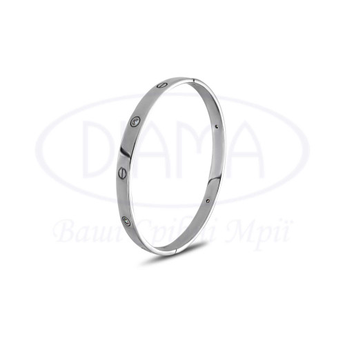 Срібний браслет в стилі Картьє (Cartier) з білим цирконом. Срібло 925 проби, покрите родієм. Ширина браслету 5,5 мм