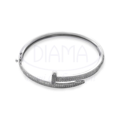 Браслет срібний з білим цирконом у формі цвяха, виконаний в стилі Картьє (Cartier). Срібло 925 проби, покрите родієм. Ширина - 5мм