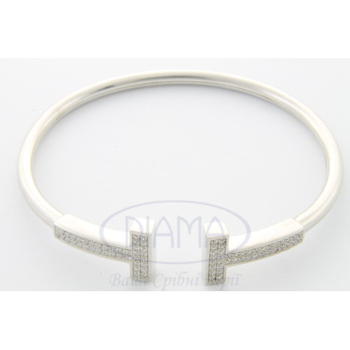 Браслет срібний з білим цирконом. Срібло 925 проби, покрите родієм.