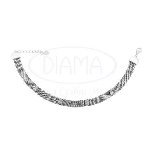 Браслет срібний з білим цирконом у формі краплі. Срібло 925 проби, покрите родієм.