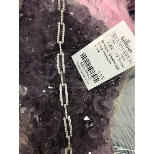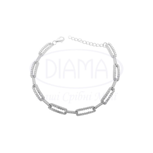 Браслет срібний з білим цирконом. Срібло 925 проби, покрите родієм. Розмір головного елементу 5х15 мм.