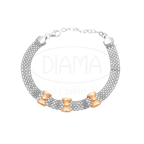 Браслет срібний в стилі Пандора (Pandora) з прикрасою у формі банта. Срібло 925 проби, покрите родієм та червоною позолотою.