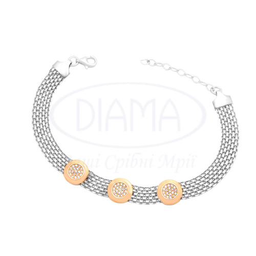 Браслет срібний в стилі Пандора (Pandora) з прикрасою у формі кола, покритого червоною позолотою з білим цирконом. Срібло 925 проби, покрите родієм.
