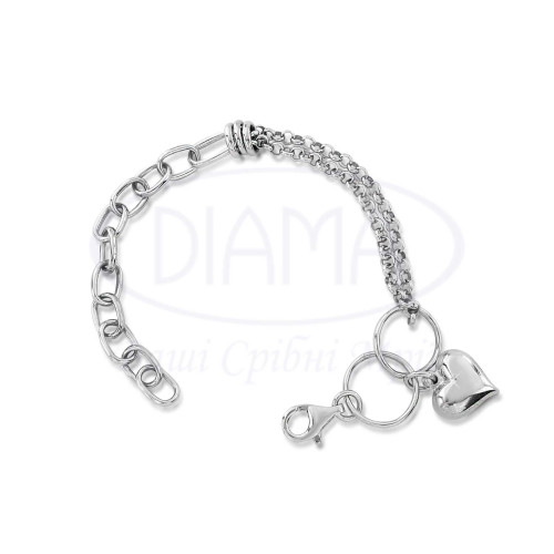 Срібний браслет "Серце"