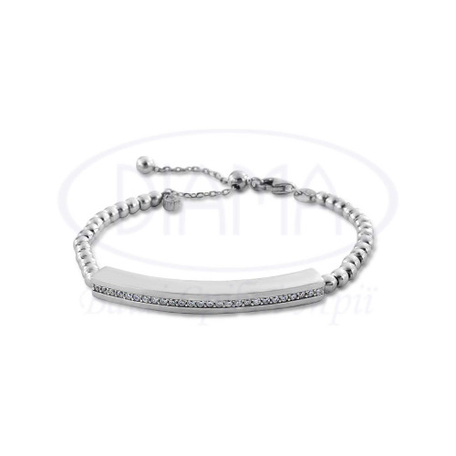 Браслет срібний з кульками та планкою з білим цирконом. Срібло 925 проби, покрите родієм. Розмір кульки 3 мм, розмір планки 4х32 мм.