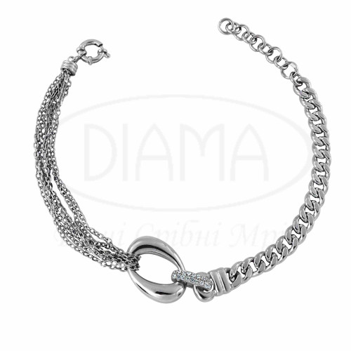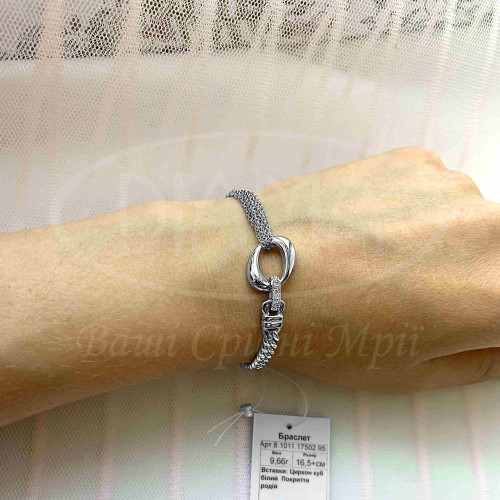 Браслет срібний з овалом та білим цирконом. Срібло 925 проби, покрите родієм. Розмір овалу 12*17 мм.