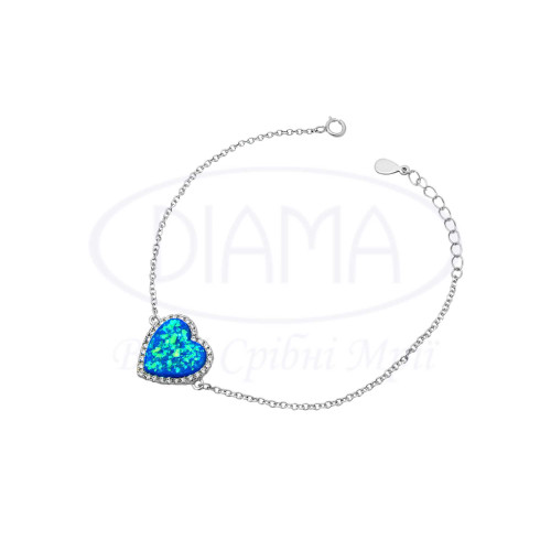 Браслет срібний з синім опалом та білим цирконом в формі "Серце". Срібло 925 проби, покрите родієм. Розмір 15,5 мм.