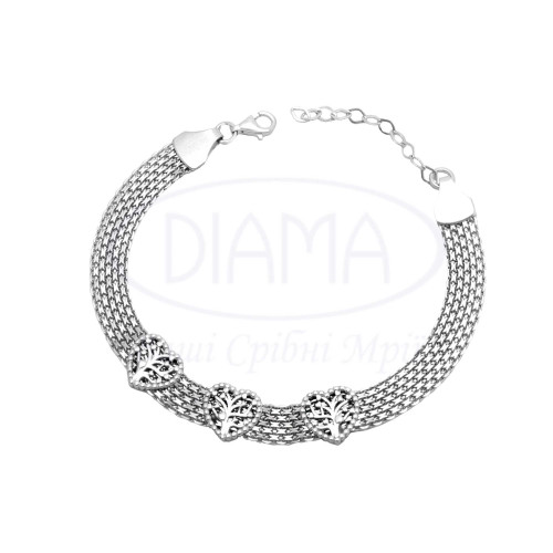 Браслет срібний в стилі Пандора (Pandora) з прикрасою у формі серця, в середині якого дерево. Срібло 925 проби, покрите родієм.
