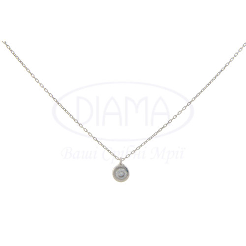 Срібне кольє з одним білим цирконом. Срібло 925 проби, покрите родієм. Розмір головного елементу 6 мм. В наборі присутні браслет та кольє.