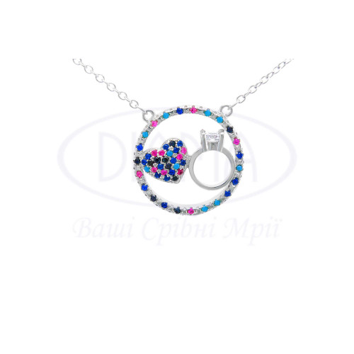 Кольє срібне "Серце з каблучкою" з кольоровим цирконом. Срібло 925 проби, покрите родієм. Діаметр кола 20 мм.