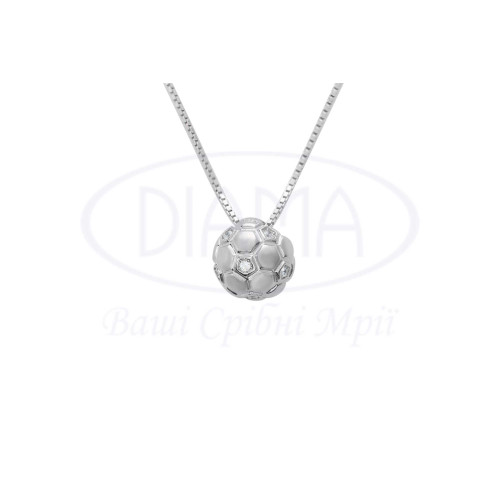 Кольє срібне у формі м'яча з білим цирконом. Срібло 925 проби, покрите родієм. Розмір головного елементу 12 мм.
