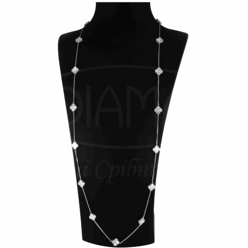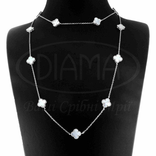 Срібне Кольє 925 проби, покрите родієм. Виготовлене в формі Конюшини з білим перламутром.В наборі присутні кольє та браслет.