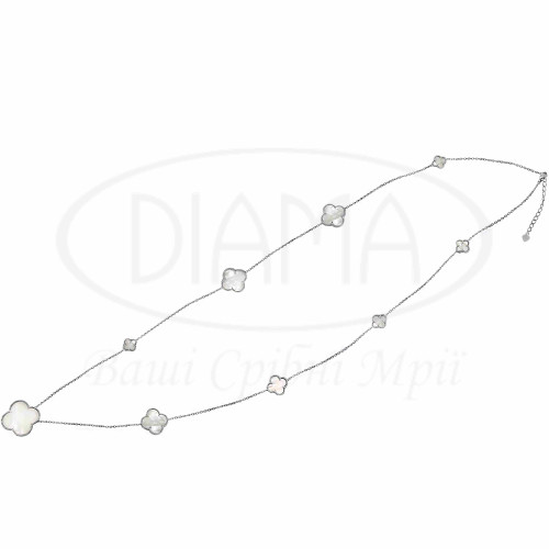 Срібне кольє з білим Перламутром. Срібло 925 проби, покрите родієм. Комплект виготовлений в формі "Клевер", складається з браслету та кольє.