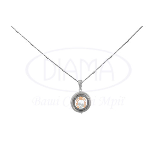Кольє срібне з підковою під склом та білим цирконом. Срібло 925 проби, покрите родієм. Підкова срібна, покрита позолотою.