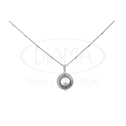 Кольє срібне з зіркою під склом та білим цирконом. Срібло 925 проби, покрите родієм.