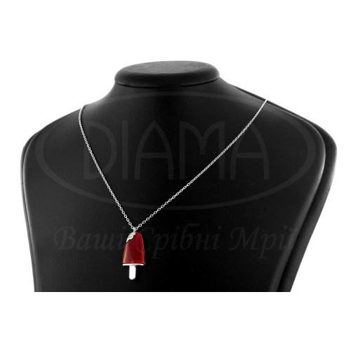 Кольє срібне в формі Морозива з Сердоліком та білим цирконом. Срібло 925 проби, покрите родієм. Розмір Морозива 12*28 мм з петелькою.