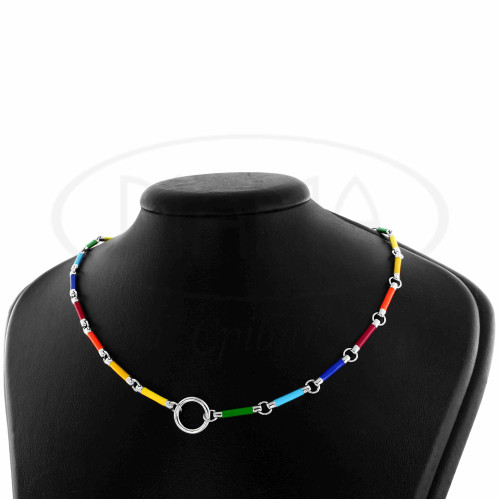 Кольє срібне з різнокольоровою емаллю. Срібло 925 проби, покрите родієм. Розмір секції 2*16 мм.