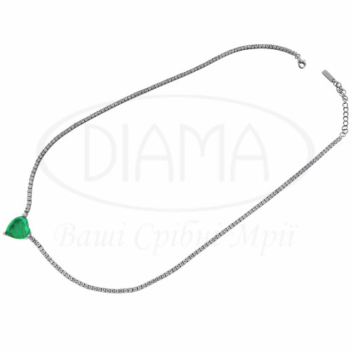 Кольє срібне з серцем зеленого кольору. Срібло 925 проби, покрите родієм. Розмір серця 12*14 мм