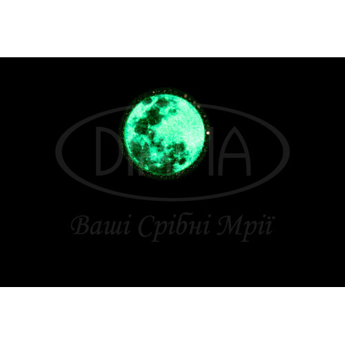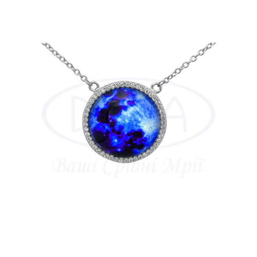 Кольє срібне з ювелірним склом, що світиться в темряві, а також з білим цирконом. Срібло 925 проби, покрите родієм. Розмір головного елементу 21 мм. У комплекті кольє та підвіска