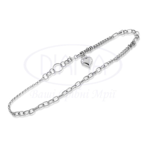 Кольє срібне у формі серця, яка складається з різних ланцюгів та кілець. Срібло 925 проби, покрите родієм. У наборі є кольє та браслет.