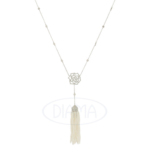 Срібне кольє з перлинами та білим цирконом. Срібло 925 проби, покрите родієм.